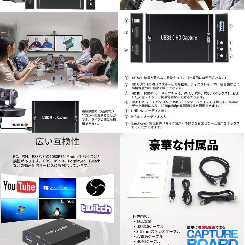 Hdmiキャプチャーボード ゲームキャプチャー ビデオキャプチャー Usb3 0 Hd1080p 60fps 低遅延 軽量小型 Pc Switch Ps4 Xbox Ps3 携帯電の通販はau Pay マーケット hukihouse