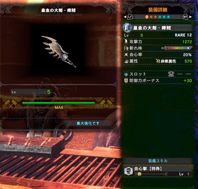 Mhwi 元当たり鑑定武器 ガイラソード 火 を強化してみた 今回のマスターマムタロトの防具について モンスターハンターワールドアイスボーン 実況 Youtube